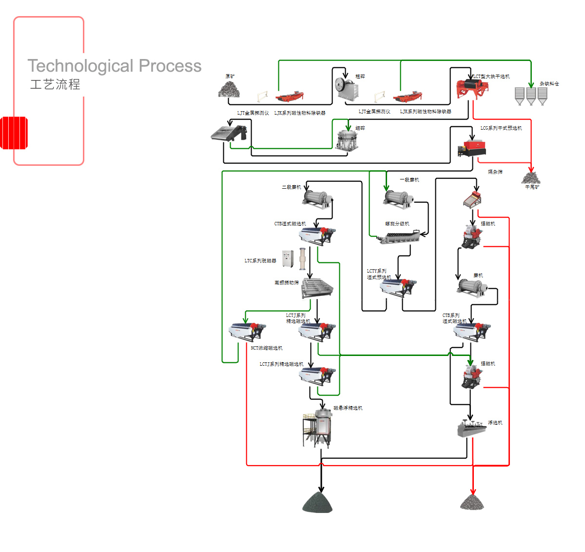 從粗碎后預選到細碎后、超細碎后精選的全流程磁選設備,針對不同礦石性質和工藝段隆基推出了針對性產品解決方案,定制化服務,達到設備與工藝完美結合,分選指標優于工藝要求,產品價值超越客戶期待。