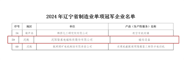 沈陽隆基磁選設備入選《2024年遼寧省制造業單項冠軍》