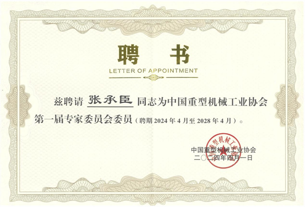 當選中國重型機械工業協會第一屆專家委員會專家