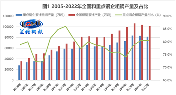 其一,從粗鋼產量數據來看,2022年全國粗鋼產量10.13億噸,其中重點鋼企粗鋼產量8.15億噸,占總產量的80.5%(詳見圖1)。從營收數據來看,2022年鋼鐵行業實現營業收入87147億元,其中重點鋼企實現營業收入65875億元,占總營收的75.6%。從銷售利潤率數據來看,2022年鋼鐵行業全年的銷售利潤率僅僅為0.4%,而重點鋼企的銷售利潤率為1.5%,高出整體行業1.1個百分點。從利潤數據來看,2022年鋼鐵行業實現利潤總額365.5億元,其中重點鋼企實現利潤總額982億元,重點鋼企的利潤總額竟然高出整體行業如此之多(詳見圖2),而作為鋼企龍頭的中國寶武去年實現利潤總額312.8億元,占重點鋼企利潤的31.8%;而暫居鋼鐵行業利潤榜第二位的湖南鋼鐵集團實現利潤總額150.3億元,占重點鋼企利潤的15.3%;中國寶武和湖南鋼鐵集團總計的利潤占比達到了47.1%,近半壁江山,這表明國內鋼鐵行業兼并重組的效應正在深度發酵著,八成的產量實現了七成的營收更實現了鋼企利潤的明顯提升。