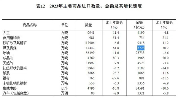 全年貨物進出口總額417568億元,比上年增長0.2%。其中,出口237726億元,增長0.6%;進口179842億元,下降0.3%。2023年進口煤炭47442萬噸,比上年增長61.8%,金額3723億元,比上年增長30.2%。