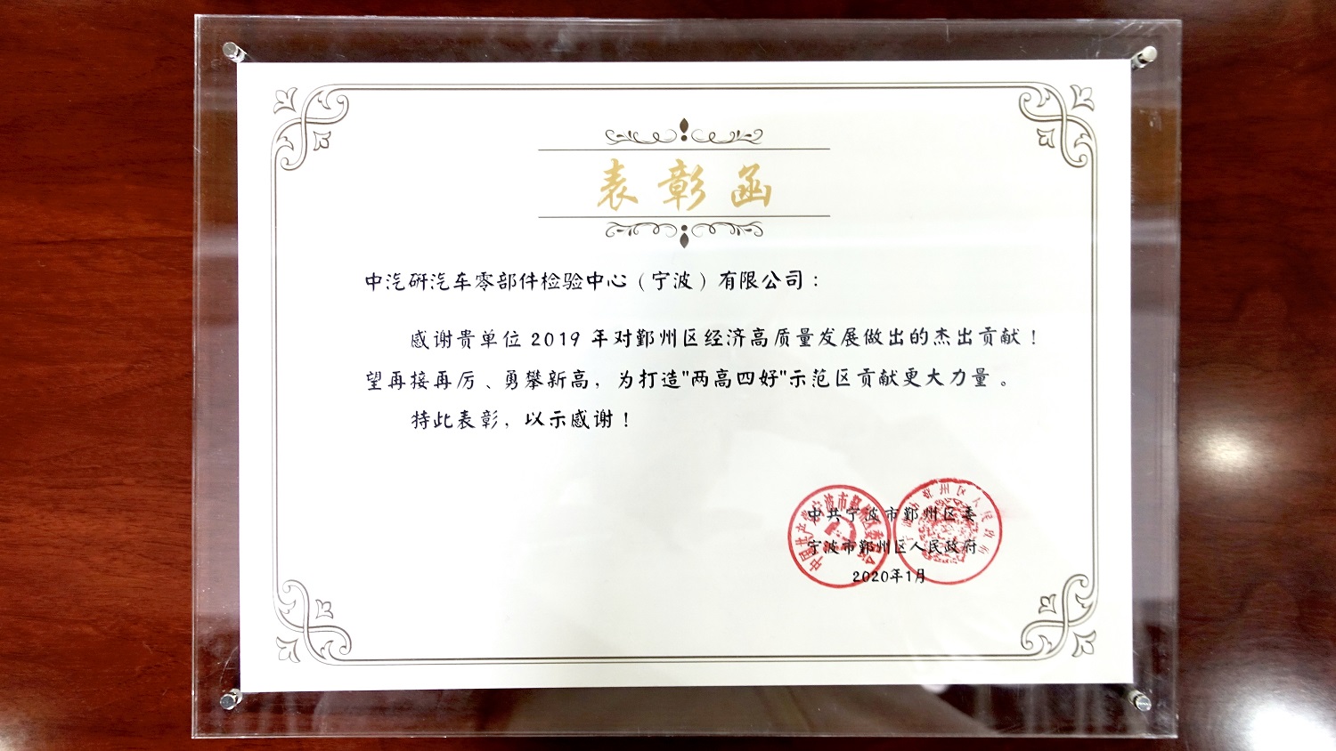 2020年1月17日下午,鄞州區(qū)區(qū)委召開2020年經(jīng)濟工作會議,中汽中心檢測認證事業(yè)部寧波汽車檢測中心鄞州分中心總經(jīng)理呂恒緒同志參加了此次會議。會議表彰了2019年度經(jīng)濟工作先進企業(yè),呂恒緒同志喜獲鄞州區(qū)2019年度“百佳先鋒”企業(yè)家之“五佳專業(yè)服務(wù)先鋒”企業(yè)家榮譽稱號。