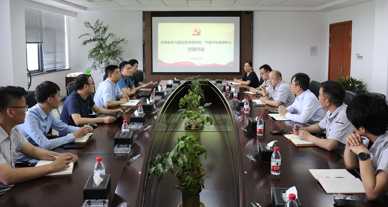 為充分發揮黨建引領作用,深入推進黨建與業務相融合、互促進,凝聚發展合力,2020年6月8日,中汽中心檢測認證事業部寧波汽車檢測中心(以下簡稱寧波中心)黨總支與車輛安全與鑒定技術研究所(以下簡稱安鑒所)黨支部開展黨建共建座談會。寧波中心黨總支書記張曉龍、安鑒所黨支部書記王學平以及相關領導班子成員參加活動。