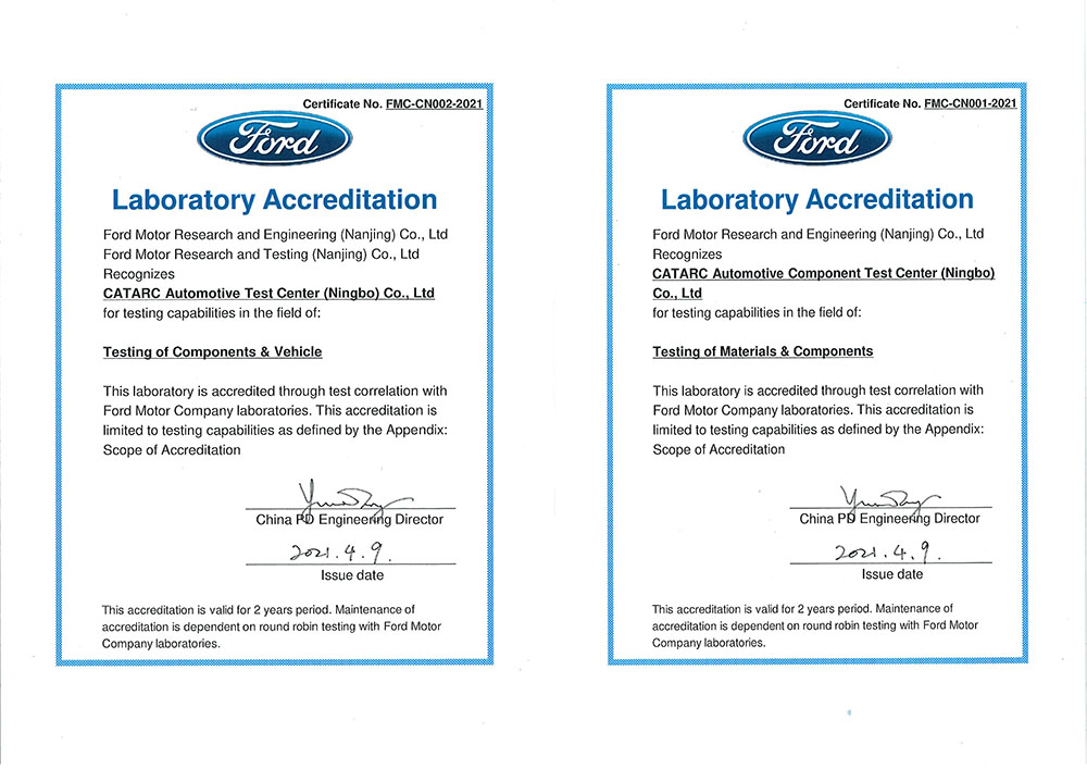 近日,寧波檢驗(yàn)中心下屬兩家公司中汽研汽車(chē)檢驗(yàn)中心(寧波)有限公司、中汽研汽車(chē)零部件檢驗(yàn)中心(寧波)有限公司順利通過(guò)現(xiàn)場(chǎng)實(shí)驗(yàn)室評(píng)審和技術(shù)比對(duì),獲得福特汽車(chē)整車(chē)及零部件認(rèn)可資質(zhì)。