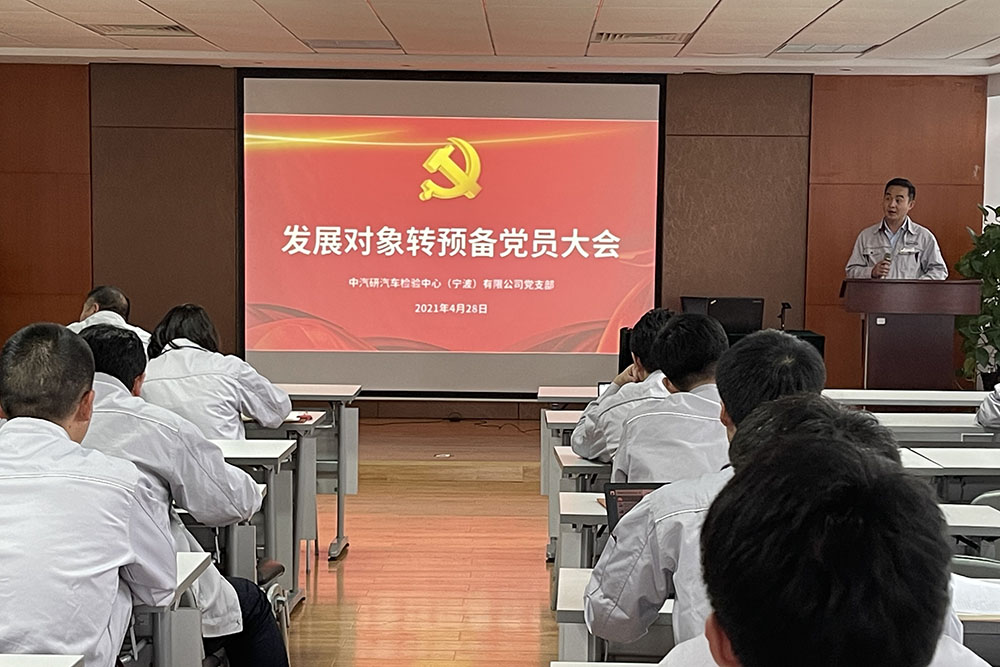 2021年4月28日下午,中汽中心檢測認(rèn)證事業(yè)部寧波檢驗中心黨總支寧波檢驗公司黨支部書記胥峰講授“紅船映初心”黨史學(xué)習(xí)教育專題黨課,全體黨員參加學(xué)習(xí)。