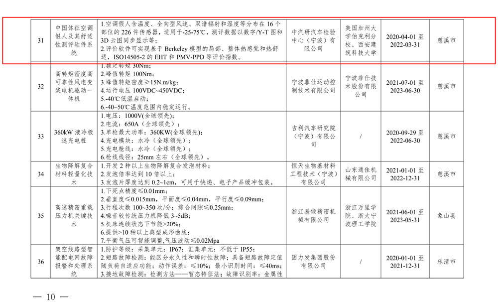 7月21日,浙江省經(jīng)濟和信息化廳公布了《關于印發(fā)2021年浙江省重點技術創(chuàng)新項目和重點高新技術產(chǎn)品開發(fā)項目計劃的通知》(浙經(jīng)信技術[2021]111號),寧波檢驗中心的“中國體征空調假人及其舒適性測評軟件系統(tǒng)”項目列入浙江省重點技術創(chuàng)新項目計劃。