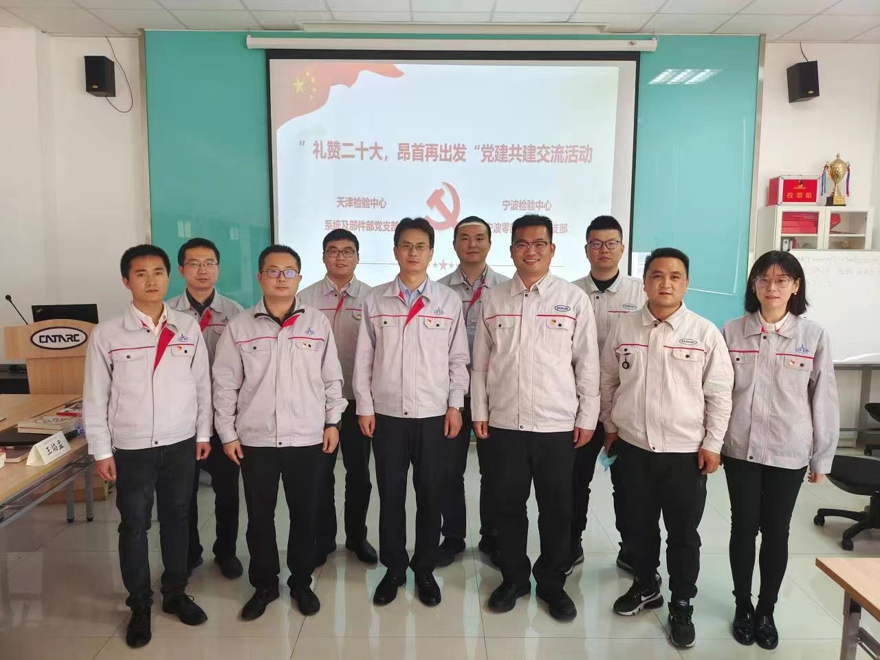 為深入學習習近平總書記在中國共產(chǎn)黨第二十次全國代表大會上的講話精神,通過黨建促進經(jīng)營發(fā)展,提高黨建工作能力水平,加強黨建經(jīng)驗交流,寧波檢驗中心寧波零部件公司黨支部與天津檢驗中心系統(tǒng)及部件部黨支部于2022年10月20日開展了“禮贊二十大,昂首再出發(fā)”主題聯(lián)合黨建活動。寧波檢驗中心黨總支委員、寧波零部件公司黨支部書記曹建驍,天津檢驗中心副總工程師、系統(tǒng)及部件部黨支部書記杜天強及雙方黨員代表、相關業(yè)務負責人出席了本次活動。