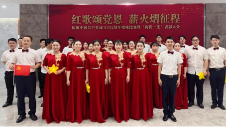 為熱烈慶祝中國共產黨成立102周年,弘揚時代主旋律,展現黨員職工群眾踔厲奮發的良好風貌,6月28日,寧波檢驗黨支部、工會積極響應寧波前灣新區四灶浦社區號召,帶領由33人組成的合唱團參加社區黨委、總工會聯合舉辦的“紅歌頌黨恩 薪火熠征程”主題歌詠比賽。