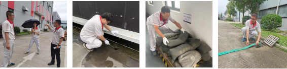 寧波檢驗中心防汛抗臺小組對廠區內油庫、試驗室、氣瓶間、樹木、車棚、池塘等區域進行了全面巡查,并分組進行了屋頂清理、下水道清理、沙袋儲備、池塘抽水等工作,做好全面防范,備戰“杜蘇芮”。